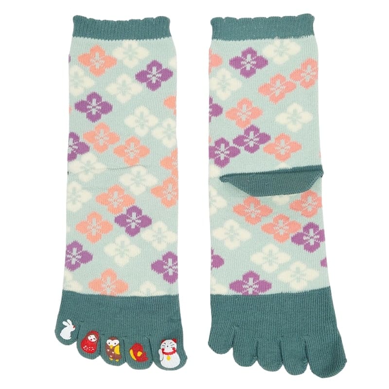 ¡Te encantarán estos calcetines Hanabishi de cinco dedos! Entre las flores tradicionales japonesas y los pequeños personajes de la suerte que decoran cada dedo (maneki-neko, daruma, búho…), no hay nada más bonito. Estos calcetines no sólo son bonitos: son transpirables, limitan la humedad entre los dedos y ayudan a mejorar la postura. Estilo ligero y comodidad.
