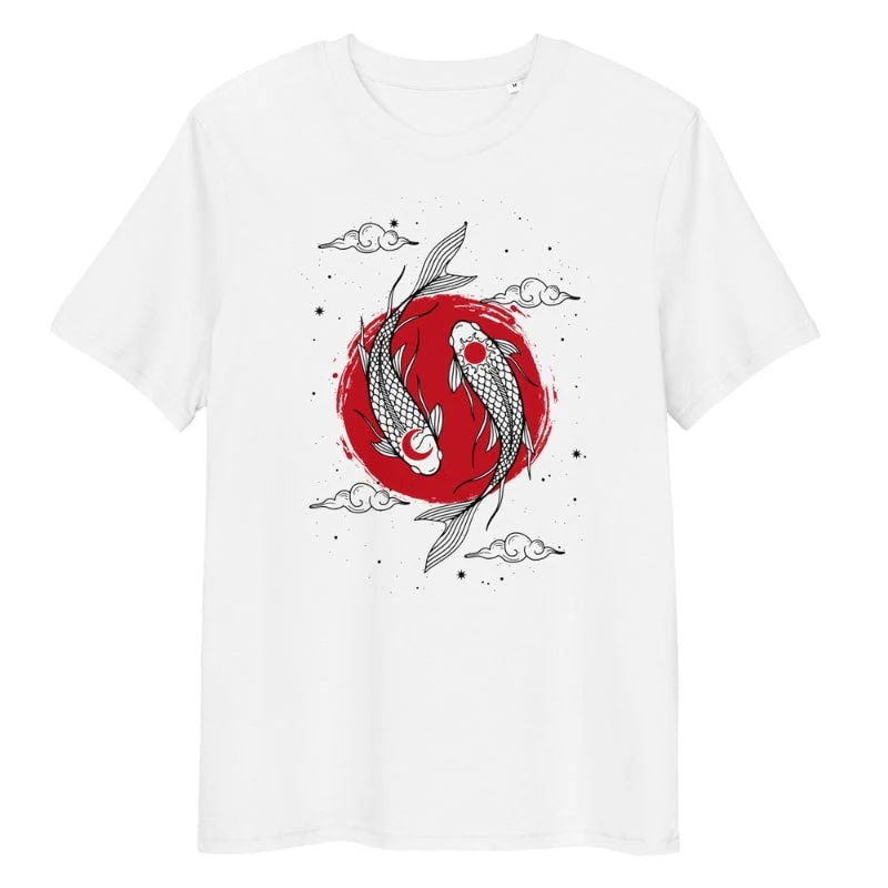 Camiseta japonesa unisex de algodón orgánico Dúo de Carpas Koi