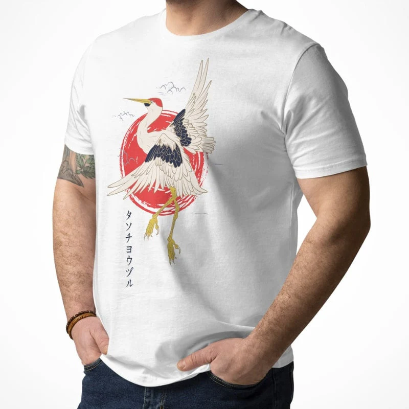 Camiseta unisex con estampado de grulla japonesa Tanchou