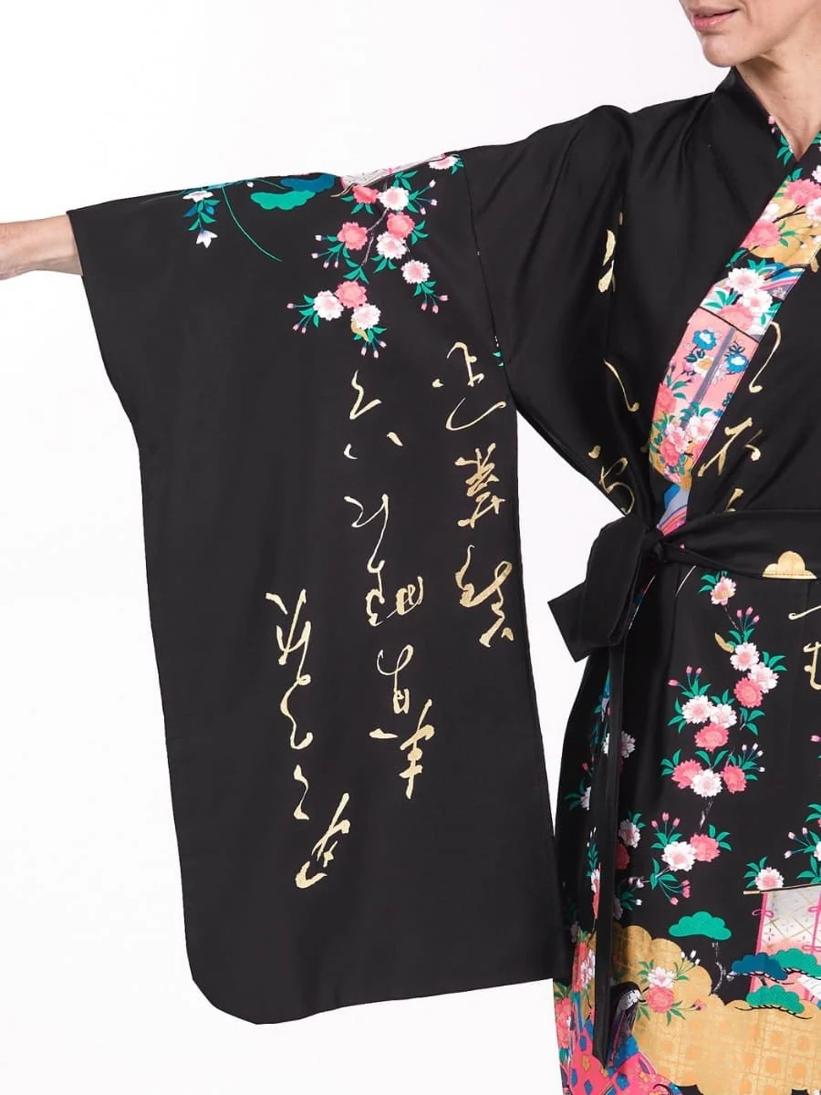 Déjate seducir por la elegancia del Kimono Japonés Furisode para Mujer, una auténtica obra de arte confeccionada en Kioto, Japón. Fabricado en satén de algodón, su tejido suave y fluido te envuelve en una comodidad absoluta, ideal para relajarte con estilo. Este furisode, caracterizado por sus mangas largas, se lleva tradicionalmente en ocasiones especiales y simboliza gracia y juventud. Un verdadero homenaje a la artesanía japonesa, perfecto para un momento de relax en casa.