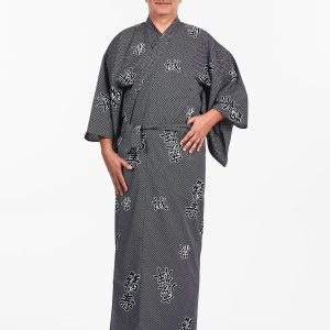 Este yukata encarna la tradición japonesa con su poderoso motivo de dragón y bambú, símbolos de fuerza y sabiduría. Su azul marino intenso le confiere una elegancia sencilla y atemporal. Fabricado en Kioto con algodón 100%, este ligero kimono combina comodidad y frescura, es perfecto para el verano. El cinturón de cinta garantiza un ajuste perfecto, para un estilo refinado que te conecta con el espíritu de Japón.