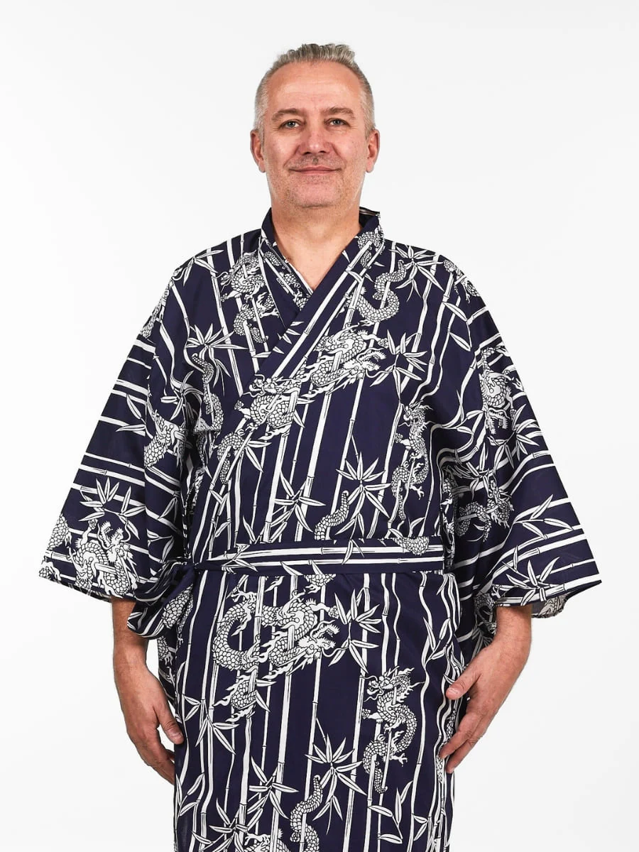 Kimono yukata japonés para hombre con diseño de bambú y dragón