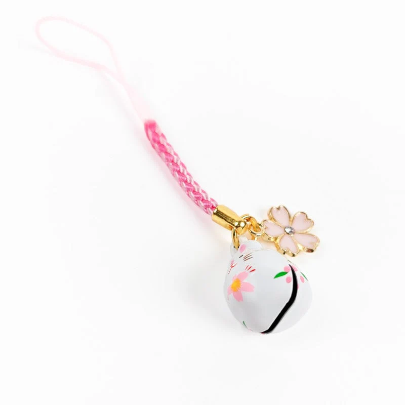 Llavero japonés de cascabel con forma de conejo blanco y flor de sakura