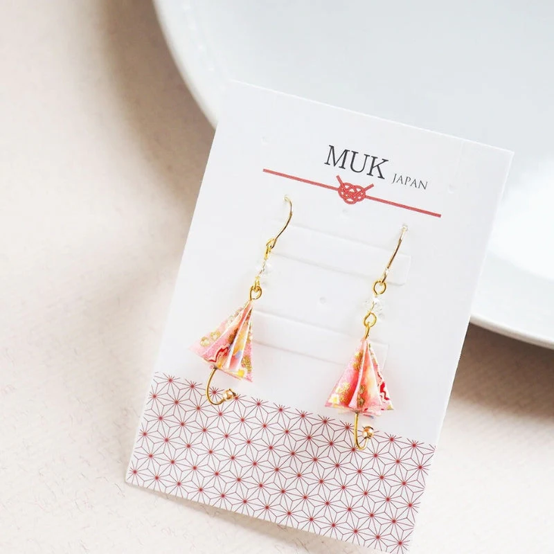 Pendientes origami japonés paraguas rosa