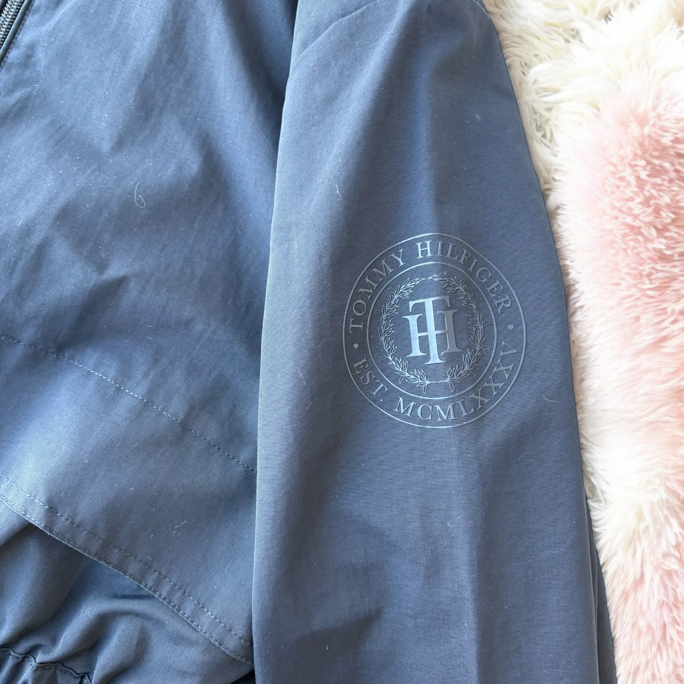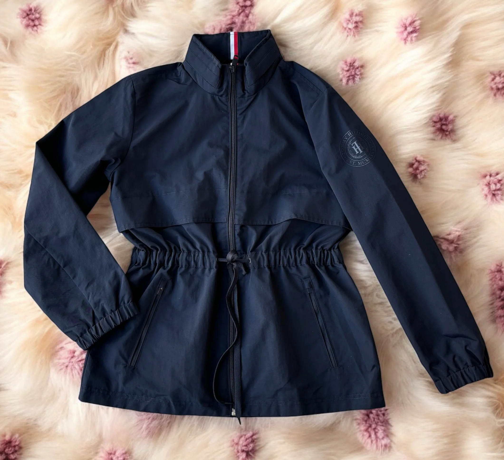 Protege tu cuerpo de la lluvia y el viento con este rompevientos azul marino de Tommy Hilfiger. Ligero e impermeable, cuenta con un logo en el brazo y un ajustador en la cintura para un ajuste perfecto. Mantente seco y con estilo en cualquier clima. ¡La mejor opción para aventuras al aire libre!