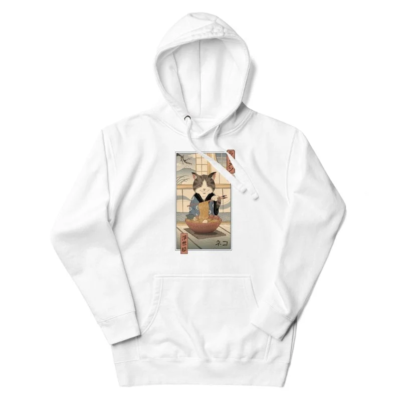 Sudadera con capucha japonesa unisex Ukiyo-e Neko Ramen