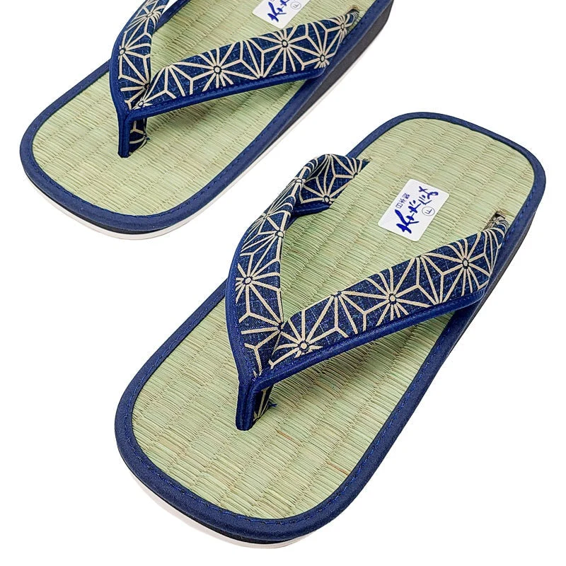 Zori japonés de paja de junco con diseño asanoha