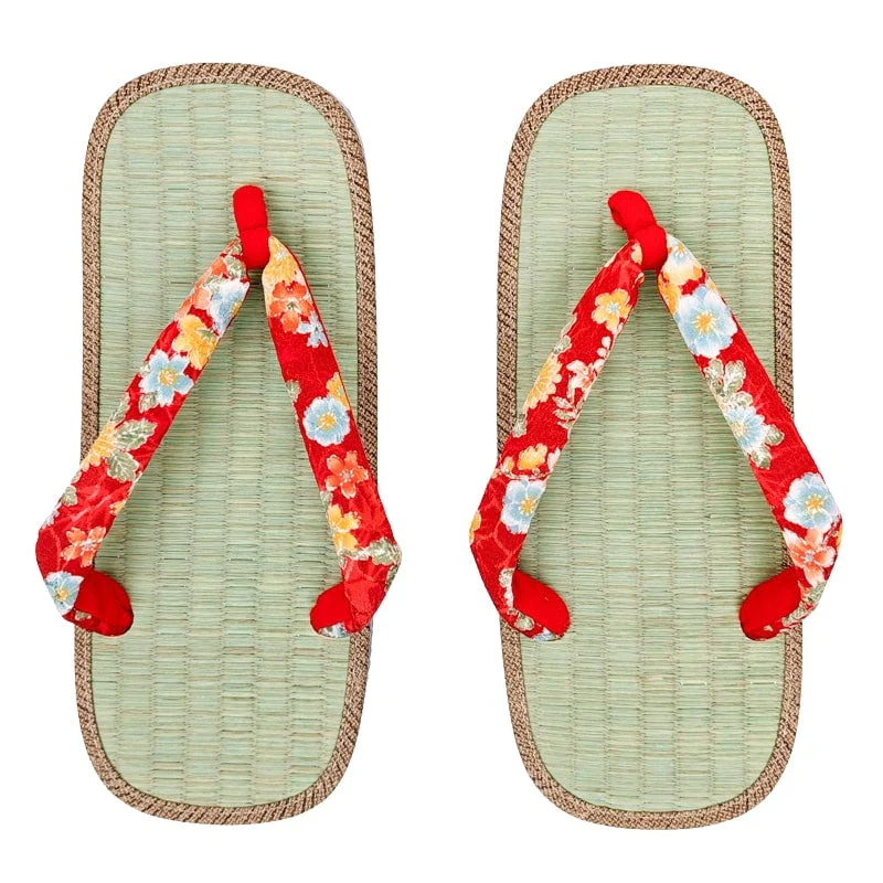 Zori japonés de mujer suela paja junco y diseño hanao rojo