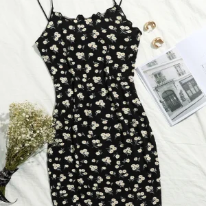 Vestido ajustado de flores de margaritas con ribete de lechuga