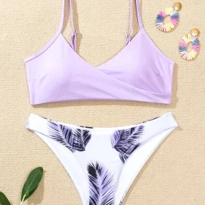 Bikini de cuello cruzado con estampado de palma
