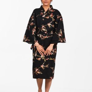 Kimono Happi Negro Grulla & Flores Mujer