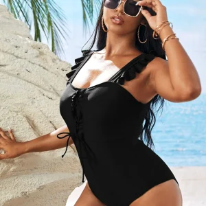 Bañador de una pieza con volantes y cordones en la parte delantera Plus