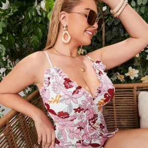 Bañador de una pieza cruzado con estampado floral Plus