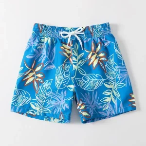 Shorts de natación con estampado de planta