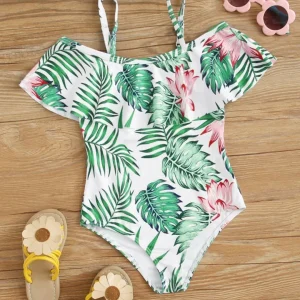 Bañador de una pieza con volante tropical niña
